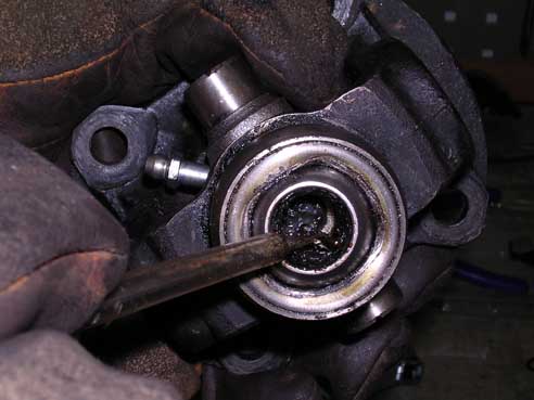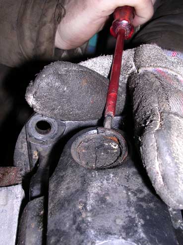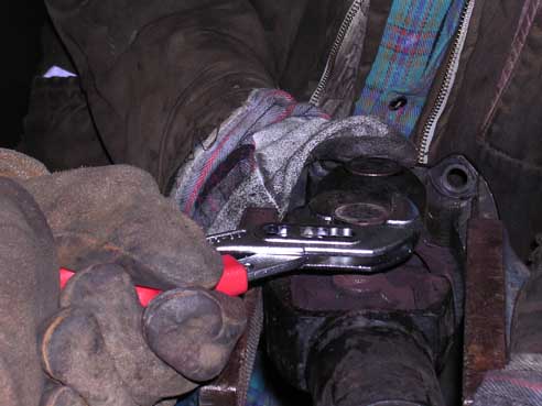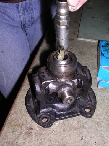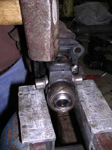 Nun muß das Lager wieder leichtgängig gemacht werden. Diese Vorgehensweise ist die gleiche wie oben, nur daß man jetzt direkt auf die Welle schlägt.