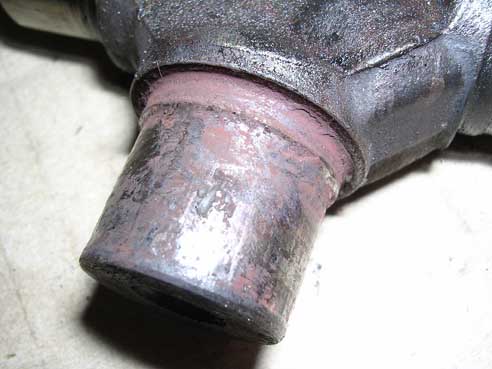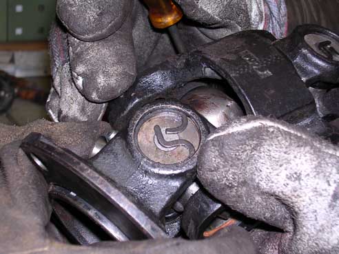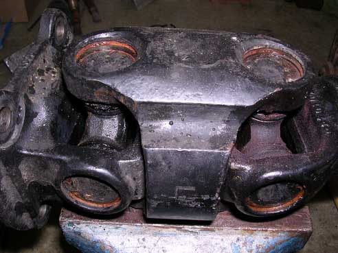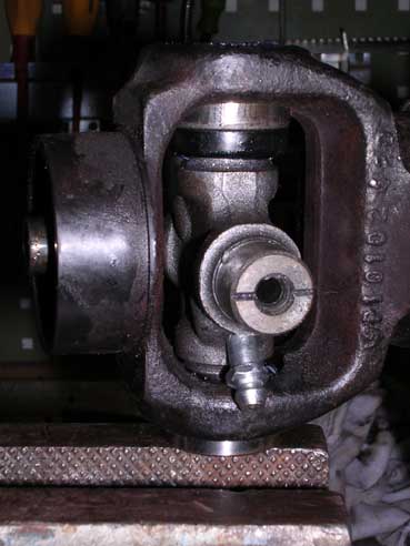 Nun einige Photos des defekten Kreuzgelenkes ohne die Lagerschalen. Man sieht sehr schön den Unterschied zwischen den blanken und dem korrodierten Zapfen.