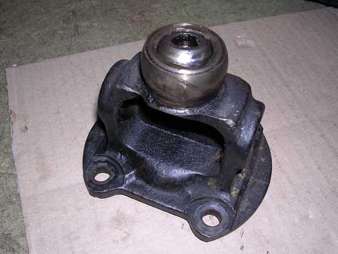 Die entfernte Lagerschale. Rechts und unten sieht man, nachdem man das Kreuzgelenk entfernt hat, die etwas tückische Kugel mit dem Nadellager in der Mitte.