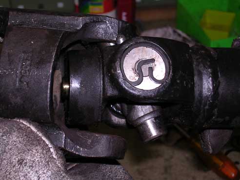 Nachfolgend die Bilder von dem Einsetzen des Kreuzgelenkes auf der längeren Seite der Welle. Hier analog zu den o.g. Punkten verfahren. Hierbei sollte man darauf achten, daß man die Schmiernippel genauso wie die am Schiebestück und dem anderen Kreuzgelenk montiert. Beim Abschmieren freut man sich dann. :)