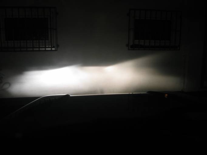 Es ist zwar schwer auf Bilder zu dokumentieren aber man kann es doch sehen das der Lichtkegel auf der Fahrerseite deutlich heller und gleichmäßiger ist.