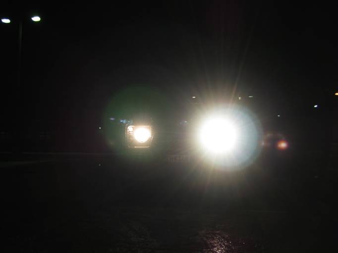 Um mir ein besseres Bild von der Lichtausbeute machen zu können hatte ich erst nur den FFScheinwerfer auf der Fahrerseite eingebaut.