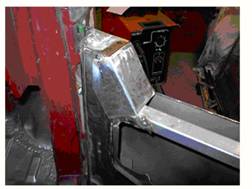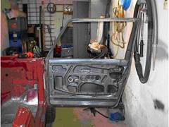 Als Ersatz der weggefallenen Türverkleidung musste ein weiteres Stück Blech herhalten.