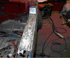 Der verbleibende Rest hatte zwar die gewünschte Form, war aber noch weit davon entfernt, die erforderliche Stabilität aufzuweisen. Ein kurzer Schnitt mit der Flex brachte ein rumliegendes Stück C-Profil auf die gewünschte Länge und etwas Stabilität in die ganze Konstruktion.