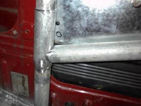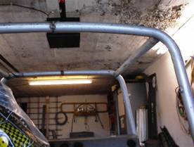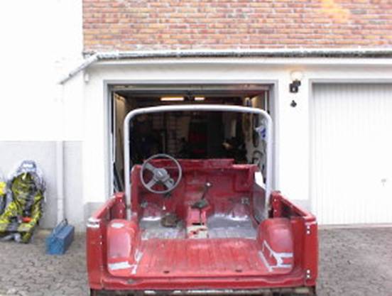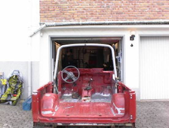 Diese Befestigungsart halte ich für die Anforderungen, die an die Konstruktion gestellt werden, für ausreichend. Zur Erinnerung: Es handelt sich um ein Fahrzeug, dass ausschließlich im Trialsport eingesetzt wird. Bei Rally- und Trophy-Fahrzeugen würde ich, auch in Abhängigkeit von Fahrzeuggewicht, diese Entscheidung noch einmal überdenken. Dann müsste der Käfigs auch an die Fahrzeugkonturen angepasst werden, wenn Windschutzscheibenrahmen und Serientüren sowie Serienüberrollbügel weiterverwendet werden sollen. Eine erste Bewährungsprobe wurde jedenfalls beim Abheben und Aufsetzen der Karosse schon überstanden. J