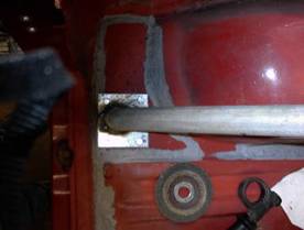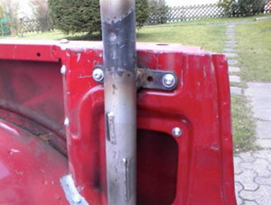 Eine erste Befestigung erfolgt mittels angeschweißtem Flacheisen an den Originalbefestigungs- Punkten des Serienbügels.